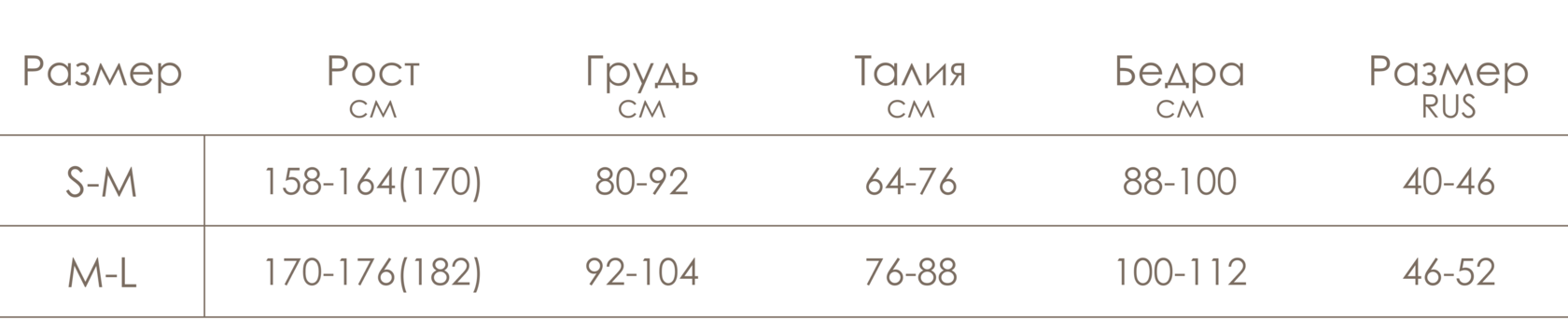 Таблица размеров